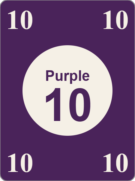 All games begin with a standard deck containing 41 cards numbered 5-14 in each of four royal colors (red, yellow, purple, and blue), plus the Royal Raven card